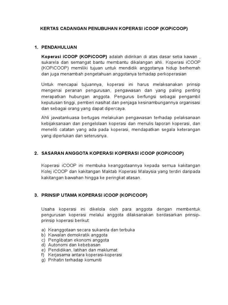 Kertas Cadangan Penubuhan Koperasi Simpa Pdf
